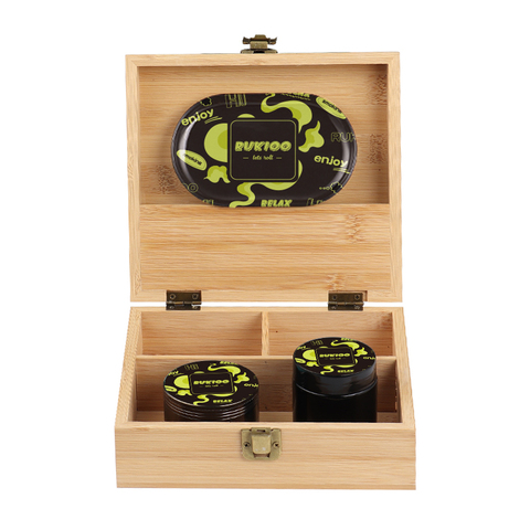 Rukioo 흡연 액세서리 허브 빅 사이즈 대나무 나무 보관함 냄새 방지 담배 흡연 트레이 세트